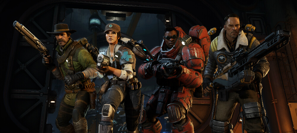 I cacciatori sono divisi in quattro classi: supporto, medico, trapper e assalto. Il prima si occupa di supportare la squadra motivandoli con frasi tipo “dai c’è la facciamo!” e dà anche qualche pacca sulle spalle…ok, scherzavo, il suo ruolo è quello di aiutare il team con particolari abilità che si differenziano in base al personaggio utilizzato, ad esempio Cabot ha un raggio che amplifica i danni ricevuti dal mostro e un cannone a rotaia, sono sempre dotati di un arma primaria piuttosto potente e un rigeneratore di scudi oltre ad un congegno di occultamento. Il medico è il membro più importante dei quattro essendo quello che mantiene viva la squadra, è dotato di un’abilità medica radiale, un’arma curativa, un’arma primaria che fa ben pochi danni e un’altra che ne fa ancora meno; in poche parole la cosa migliore e più logica che potete fare è curare continuamente i vostri alleati, a volte è capace di fare la differenza tra la vittoria e la sconfitta. Il trapper è colui/colei che cattura e stana il mostro, porta con sé una cupola portatile che quando attiva crea un campo di forza intorno ad un’area intrappolando il mostro in esso in modo che non possa scappare, ha un arma primaria leggera, un’abilità passiva e un gadget che solitamente serve a rintracciare il mostro o rallentarlo. L’assalto è una classe che è sempre esistita nel mondo dei videogame, il suo scopo è semplice: sparare a tutto ciò che si muove fino a quando smette di muoversi. Hanno due armi piuttosto potenti e abilità che migliorano la loro potenza e resistenza.